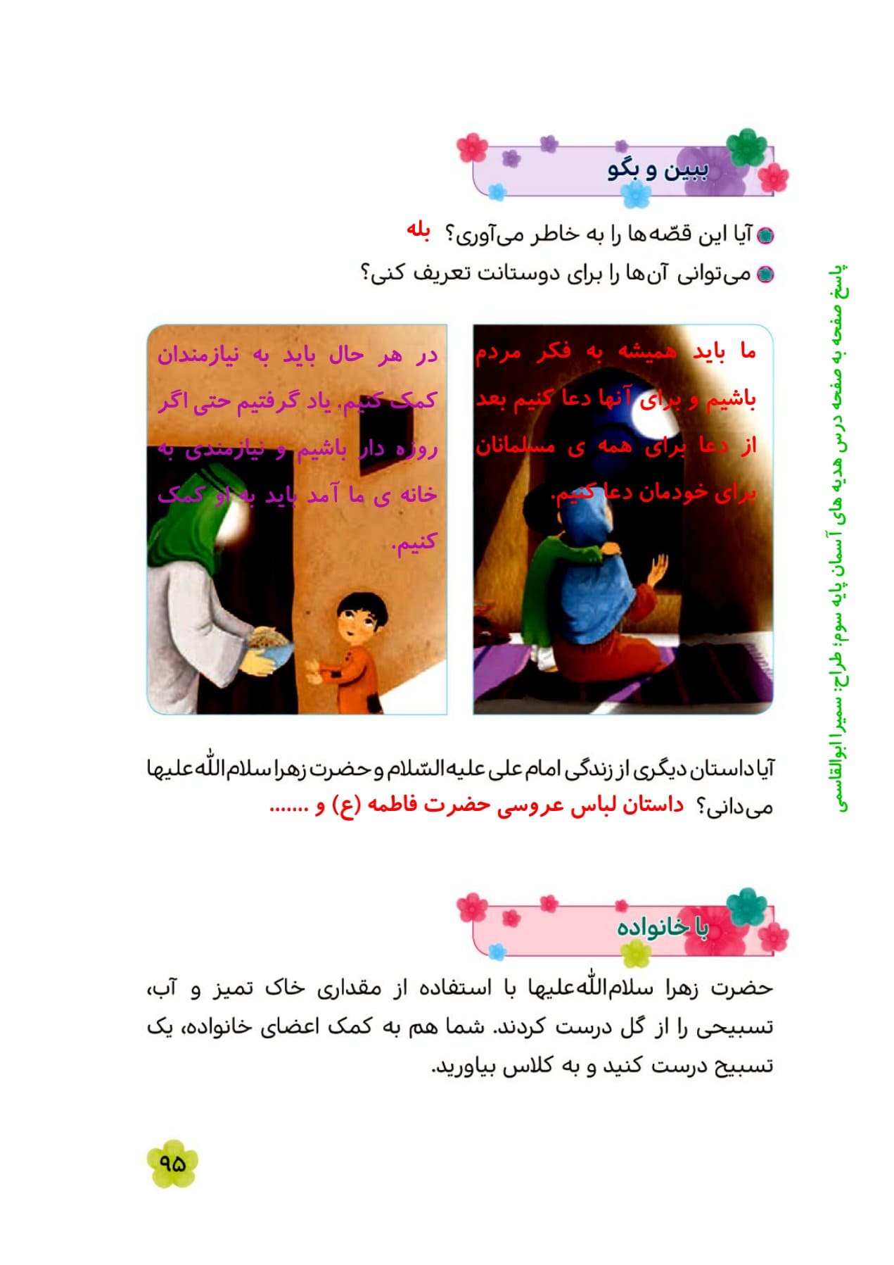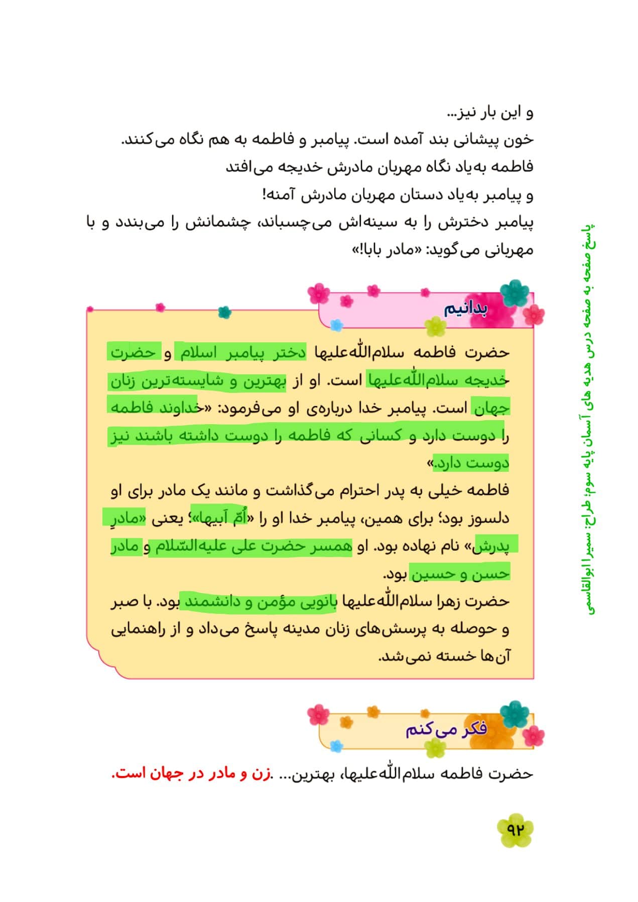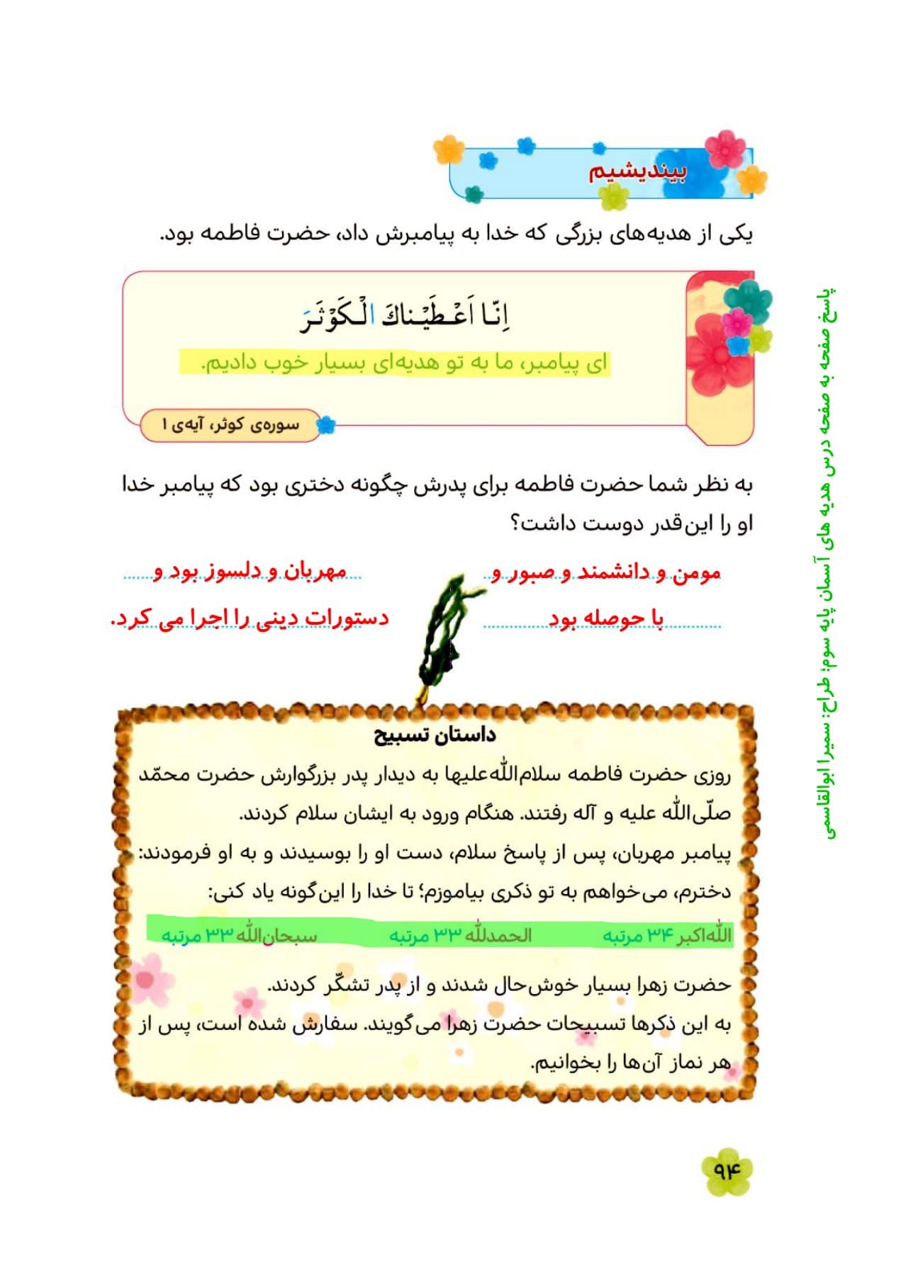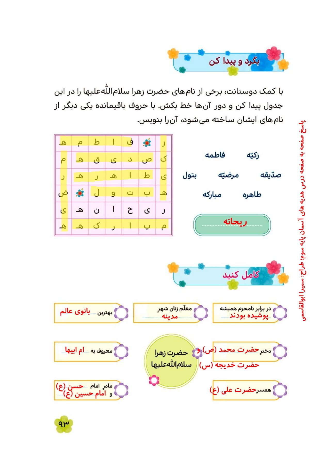 گام به گام درس چهاردهم کتاب هدیه های آسمان سوم دبستان درس اُمّ ابیها