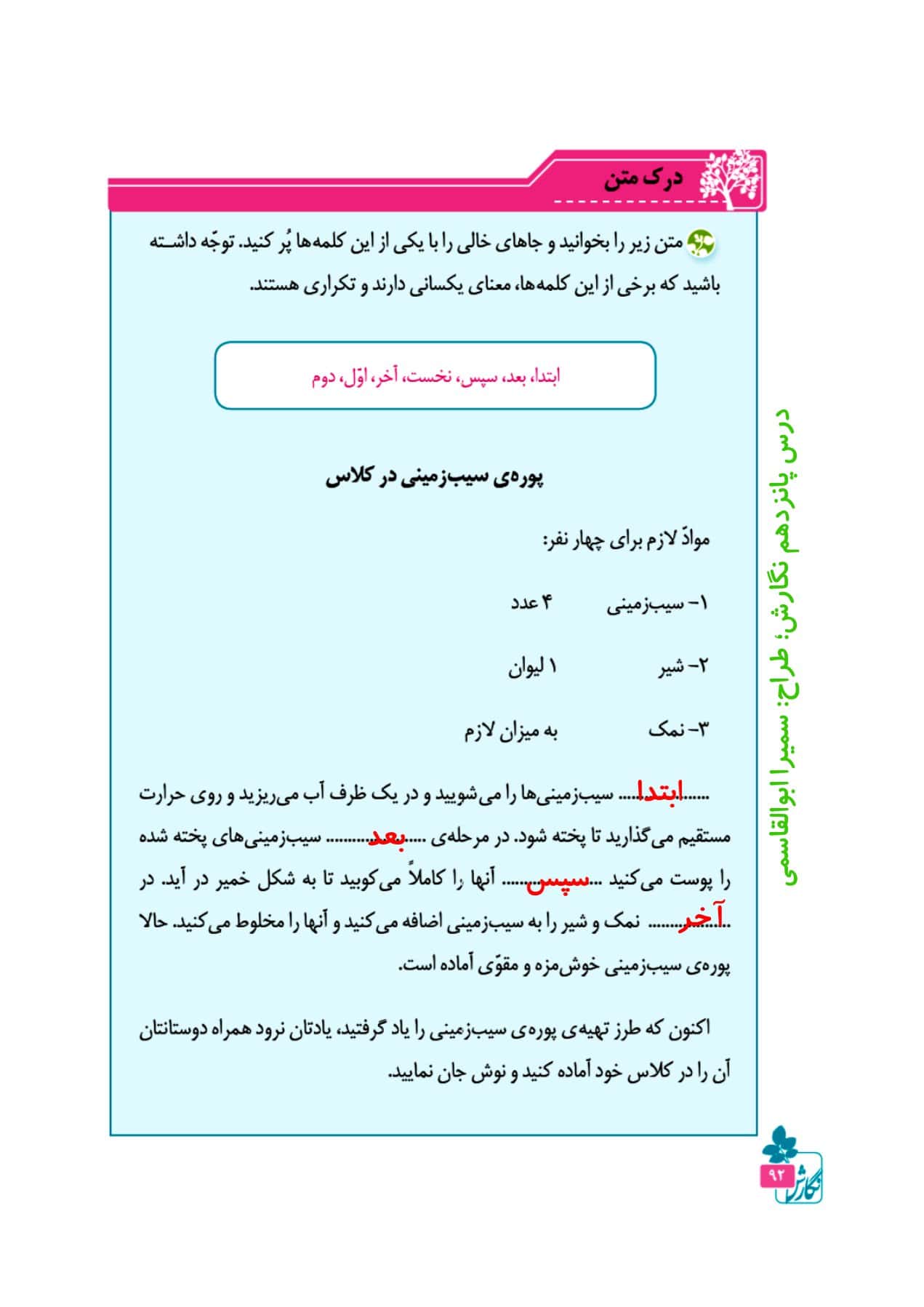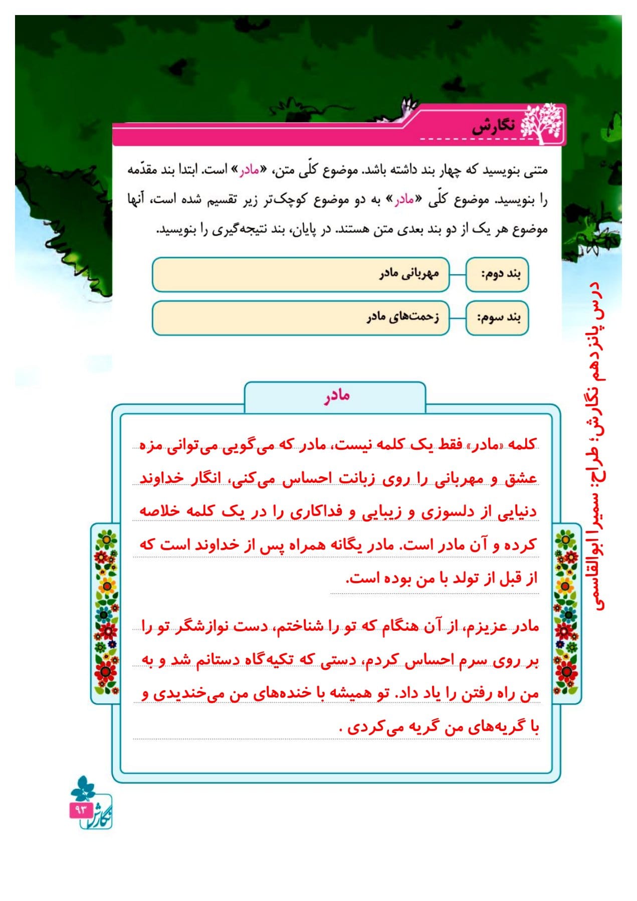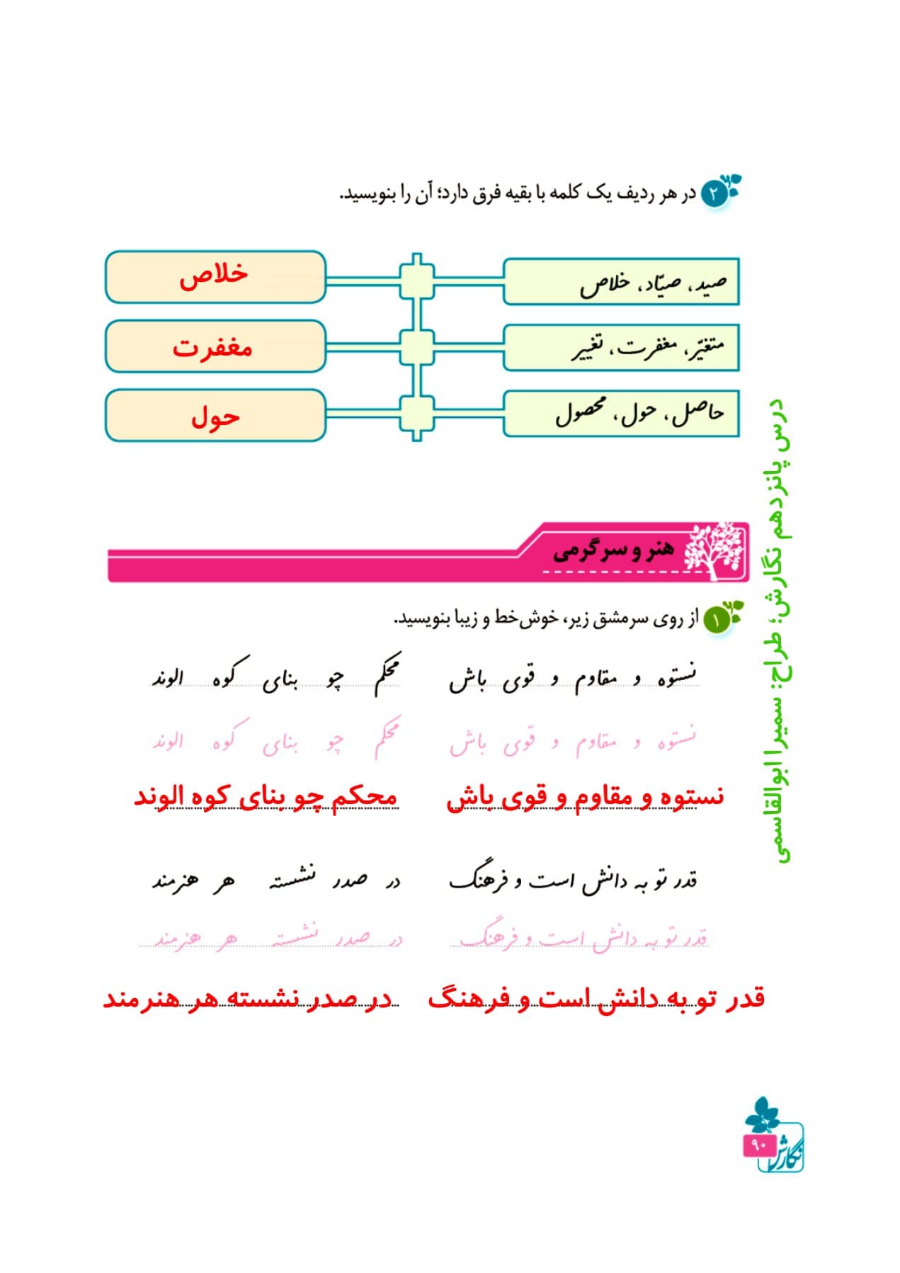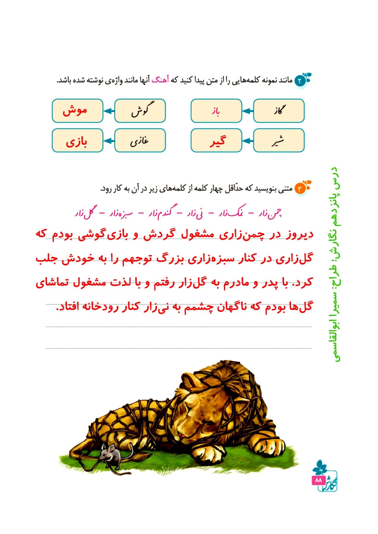 در این قسمت لیست پاسخ به تمام سوالات درس پانزدهم کتاب نگارش چهارم دبستان قرار گرفته است. گام به گام درس پانزدهم کتاب نگارش چهارم دبستان درس شیر و موش شامل پاسخنامه ی سوالات صفحه ی 88، صفحه ی 89، صفحه ی 90، صفحه ی 92، صفحه ی 93 و صفحه ی 94 می باشد.