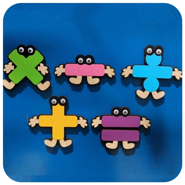 است که هر کدام با دقت بالا از چوب باکیفیت ساخته شدهاند. این علامتها در ابعاد مناسب (حدود 15 سانتیمتر) طراحی شدهاند تا در کلاس درس یا تخته وایتبرد بهخوبی دیده شوند. در پشت هر علامت، یک مگنت قوی قرار دارد که بهراحتی به سطحهای فلزی یا وایتبرد میچسبد و از افتادن یا لغزش جلوگیری میکند.