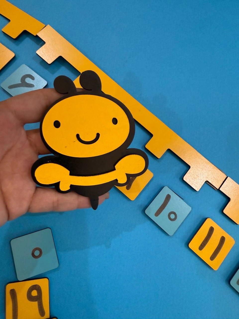 در محصول محور اعداد چوبی مگنتی، علاوه بر یک محور رنگی و جذاب، یک زنبور و یک قورباغه مگنتی نیز قرار گرفته است. این دو کاراکتر دوستداشتنی به معلم کمک میکنند تا با استفاده از داستانپردازی و حرکت این شخصیتها روی محور، مفاهیم ریاضی مانند شمارش، جهت حرکت و مقایسه عددی را به شکلی تعاملی و لذتبخش به کودکان آموزش دهد.